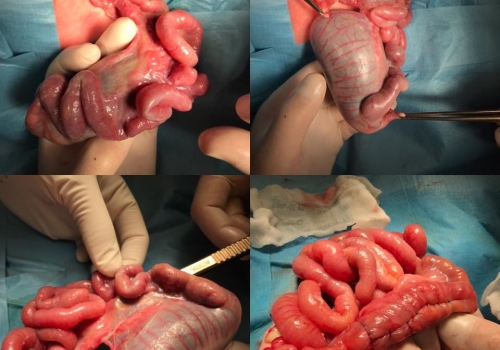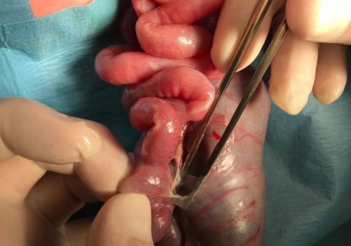 Gastrosizis nazik bağırsaq atreziyası. Gastroschisis IIIa jejunal atresia- Jejunal tapering, Jejunojejunostomy, Gastroschisis repair.