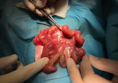 Maraqlı və çətin əməliyyatlardan yeni doğulmuş körpədə Qastroşizis və 3a tip nazik bağırsaq atreziyası (yeyunal atrezi) yəni anadangəlmə uşağın nazik bağırsağının çölədə olması və bağırsağın hissəvi olmaması. Əməliyyat: Yeyunal tapering, Yeyunoyeyunosyomiya və qastroşizisin ləğvi bağırsaqların qarın boşluğuna yerləşdirilməsi. Qeyd edim ki, Qastroşizis qarın boşluğu orqanlarının qarından çöldə olmasıdır , çox zaman nazik və yoğun bağırsaq çöldə olur daha ağır hallarda qaraciyər, dalaq və mədədə qarından çöldə yerləşə bilir bəzi hallarda nazik bağırsaq atreziyası ilə yanaşı olurki yəni nazik bağırsağın hissəvi olmamasıda olur.
